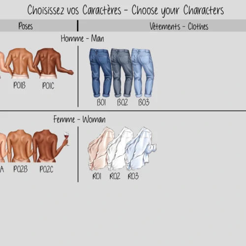 ✅ Les Prénoms, Textes, Couleurs de la Peau, Couleurs des vêtements, Couleurs des cheveux, Coiffures, Morphologies et Tailles des Personnages.